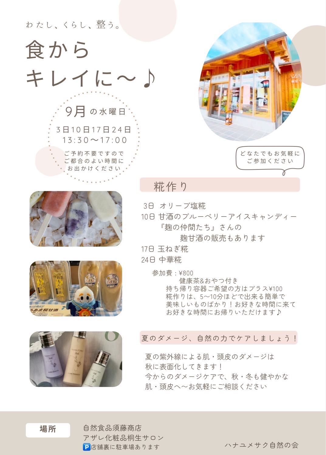 このページでは、麹の仲間たちが出店するイベント・マルシェの情報をお知らせします。