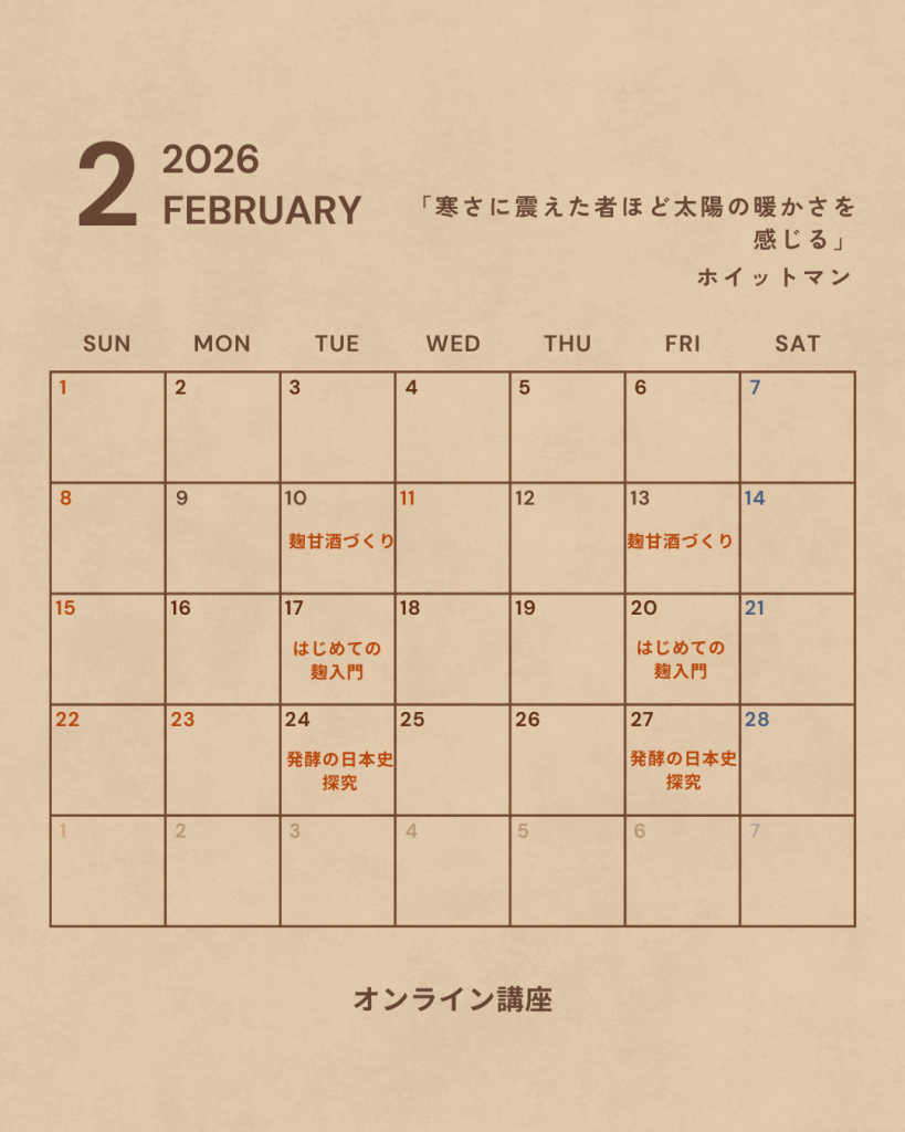 | 2月13日(金) | 22:00~23:00 | 麹甘酒づくり講座 |